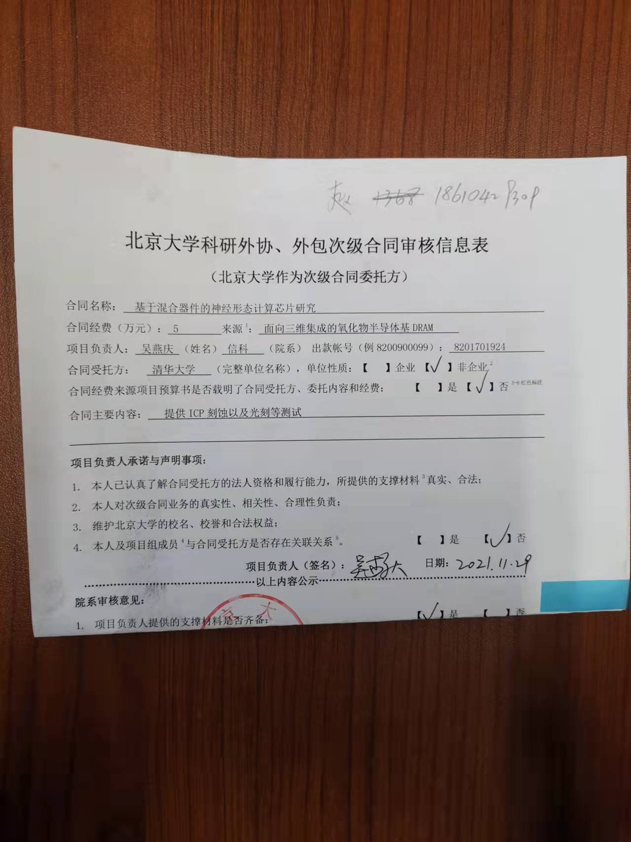 根据《关于北京大学理工科科研次级合同管理的通知》,现将北京大学理工科科研次级合同“基于混合器件的神经形态计算芯片研究”相关内容予以公示。