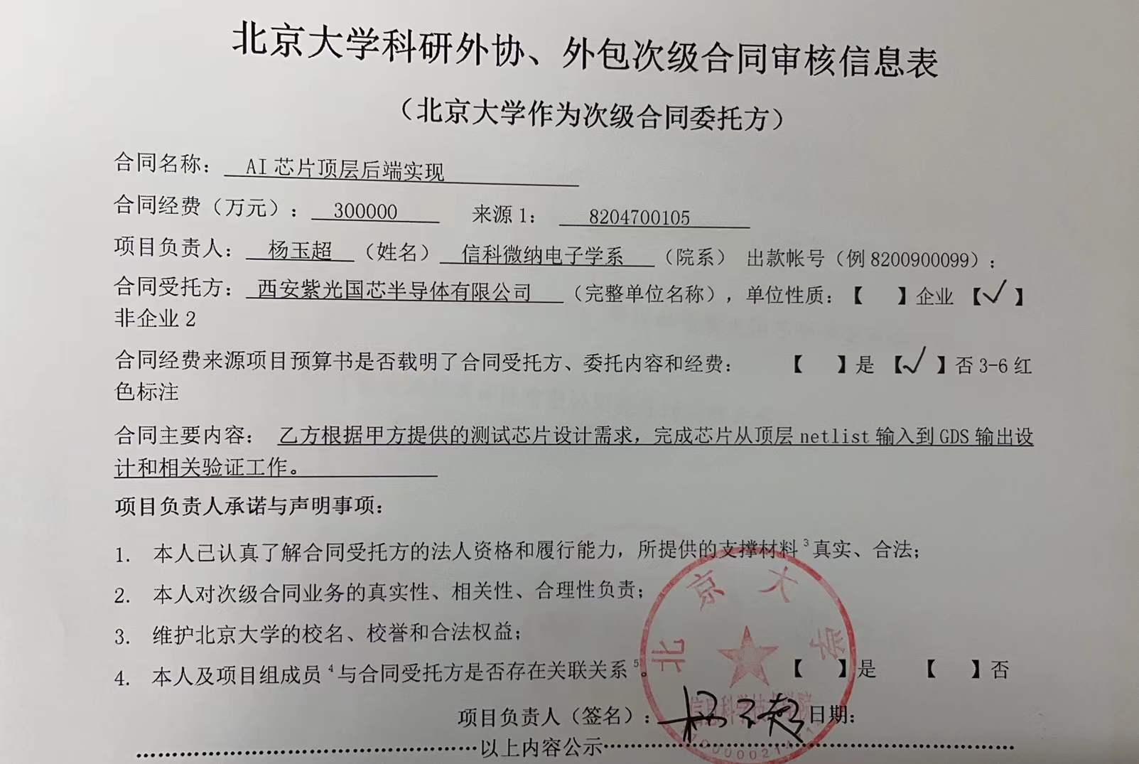 根据《关于北京大学理工科科研次级合同管理的通知》,现将北京大学理工科科研次级合同“AI芯片顶层后端实现”相关内容予以公示。