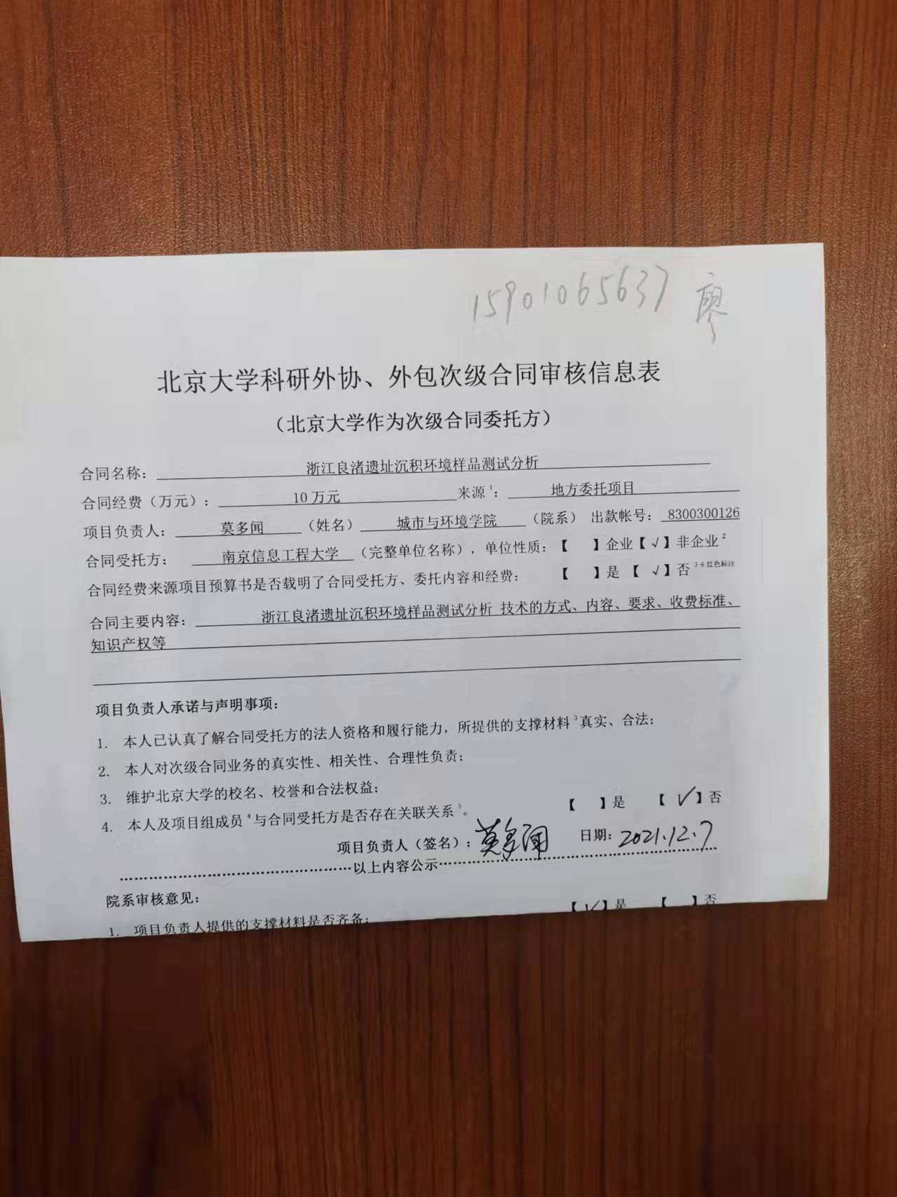 根据《关于北京大学理工科科研次级合同管理的通知》,现将北京大学理工科科研次级合同“浙江良渚遗址沉积环境样品测试分析”相关内容予以公示。