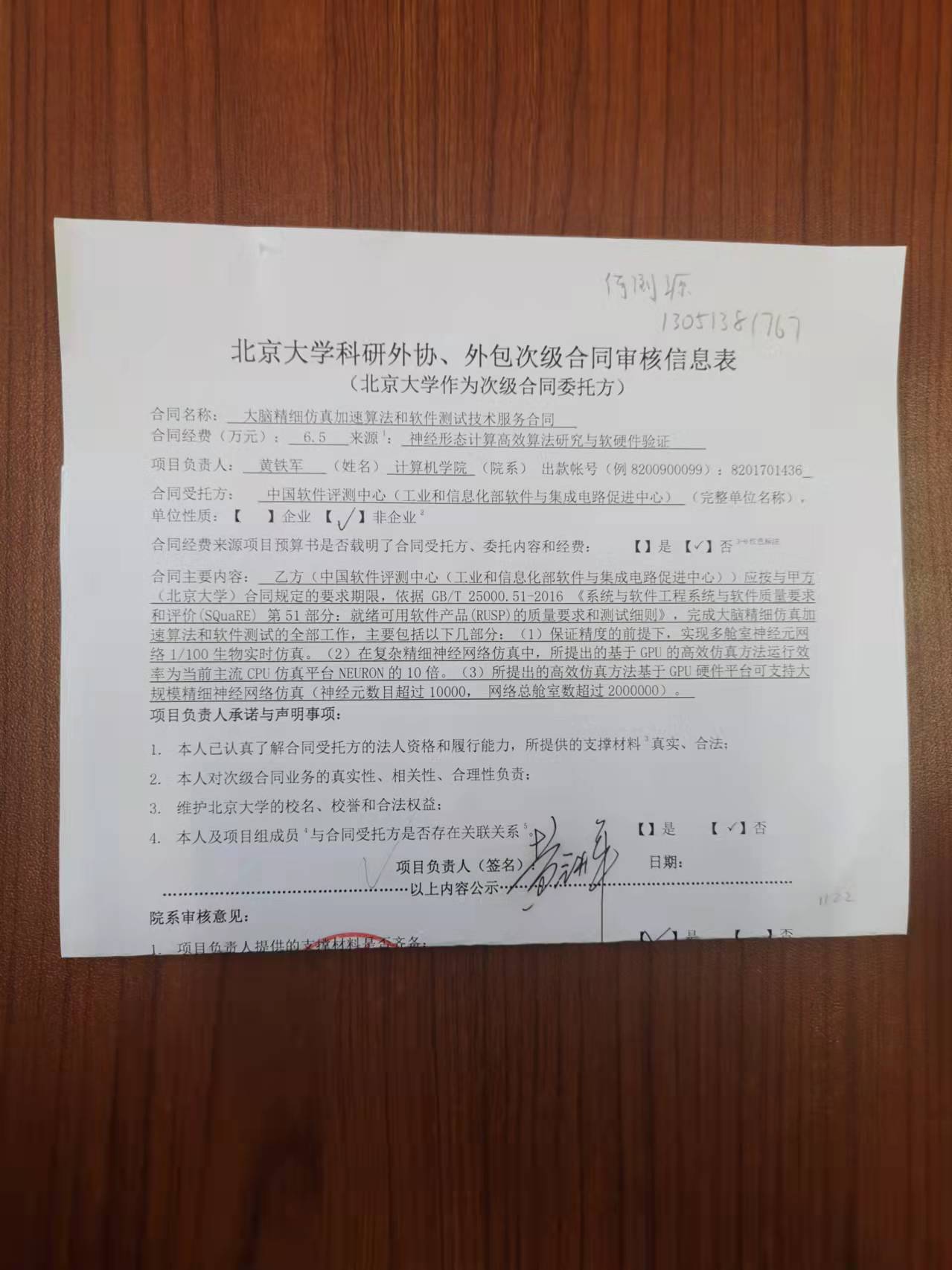 根据《关于北京大学理工科科研次级合同管理的通知》,现将北京大学理工科科研次级合同“大脑精细仿真加速算法和软件测试技术服务合同”相关内容予以公示。