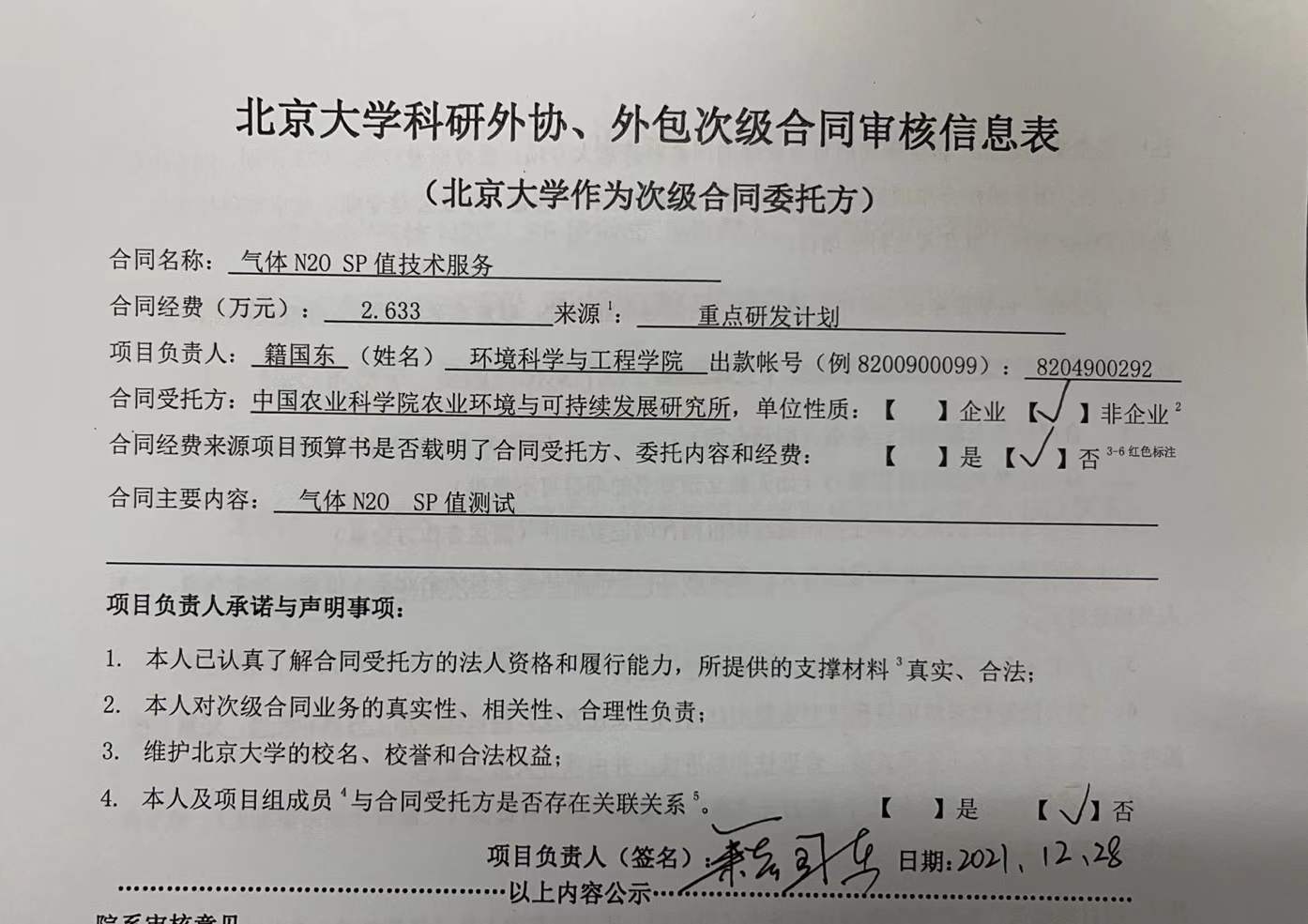 根据《关于北京大学理工科科研次级合同管理的通知》,现将北京大学理工科科研次级合同“气体N2O SP值技术服务”相关内容予以公示。