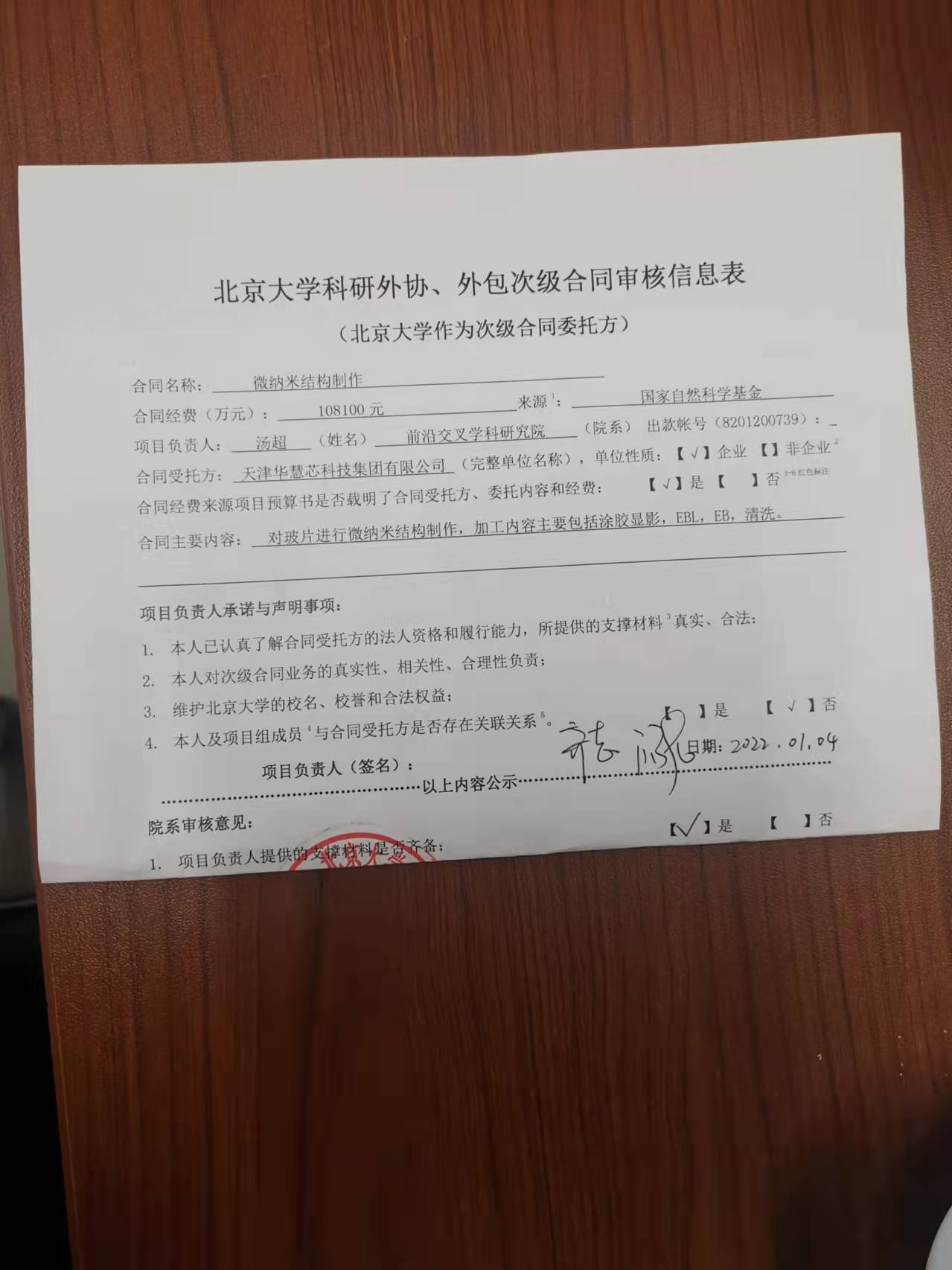 根据《关于北京大学理工科科研次级合同管理的通知》,现将北京大学理工科科研次级合同“微纳米结构制作”相关内容予以公示。