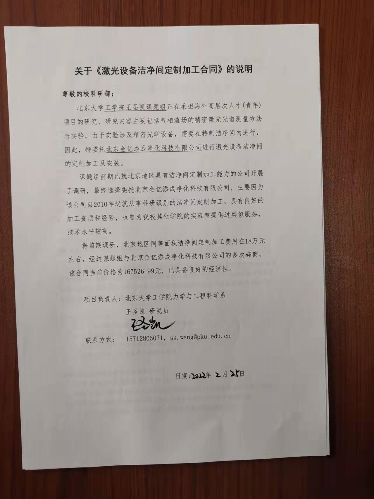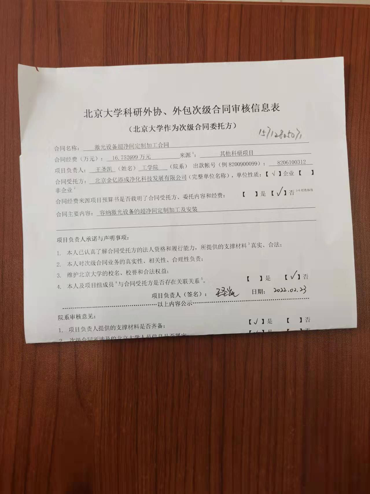 根据《关于北京大学理工科科研次级合同管理的通知》,现将北京大学理工科科研次级合同“激光设备超净间定制加工合同”相关内容予以公示。