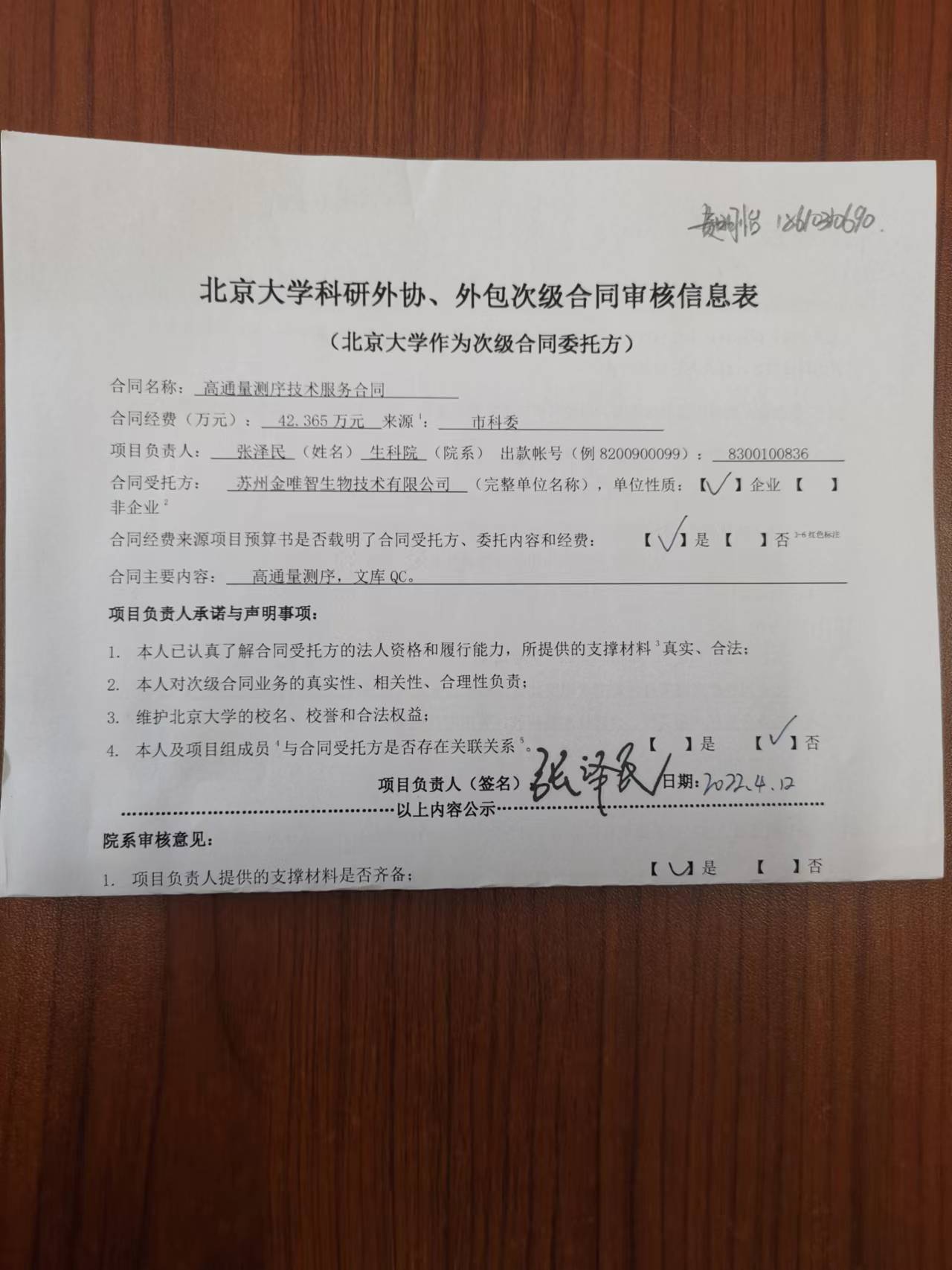 根据《关于北京大学理工科科研次级合同管理的通知》,现将北京大学理工科科研次级合同“高通量测序技术服务合同”相关内容予以公示。