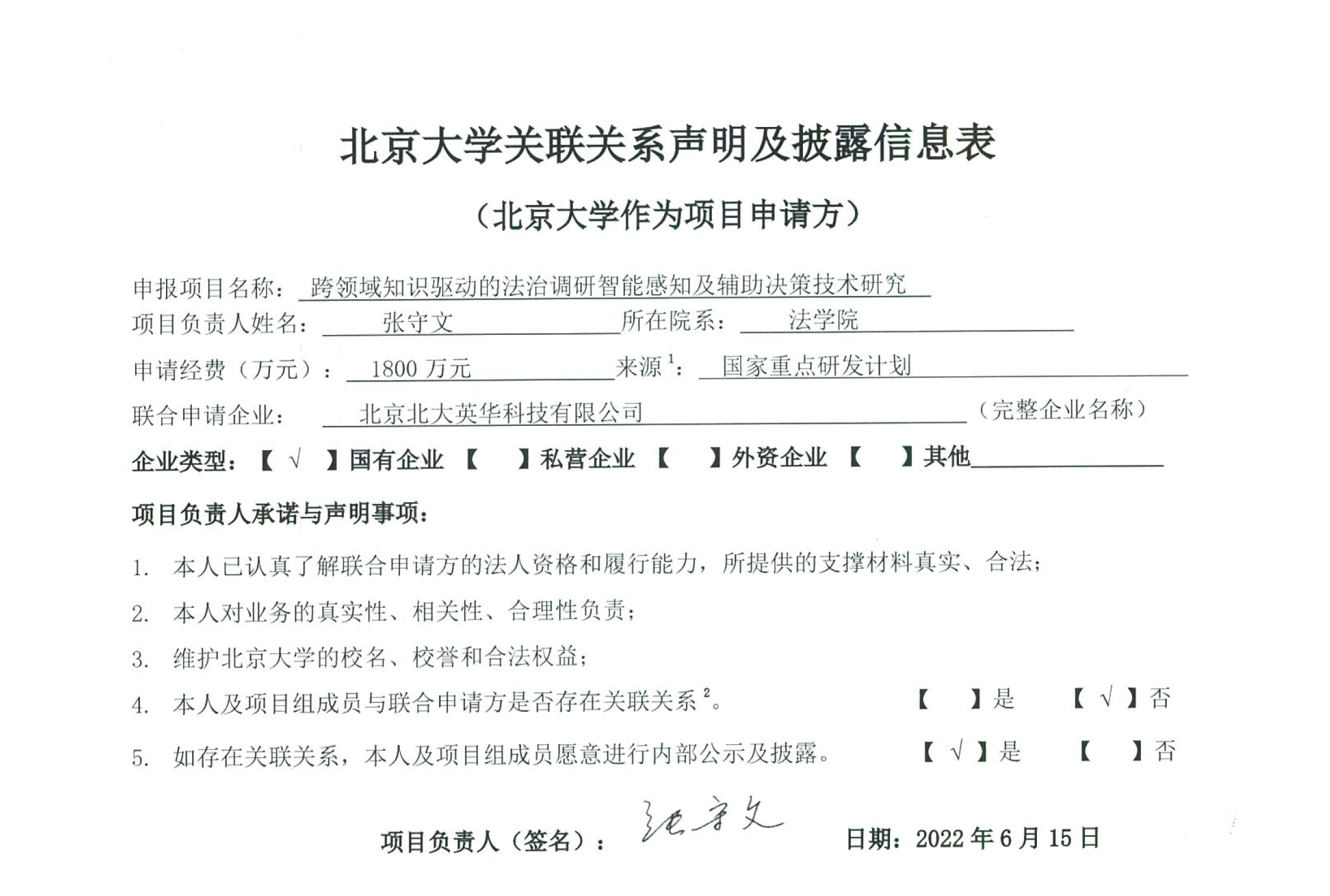 根据国家重点研发计划相关管理要求,现将北京大学关联关系声明及披露信息表予以公示。