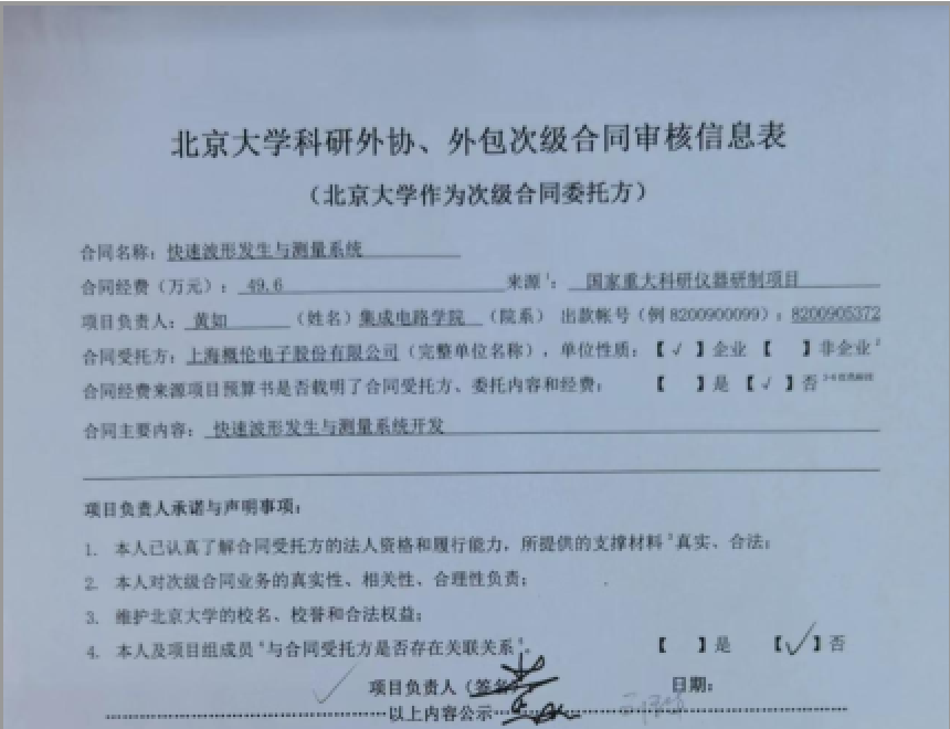 根据《关于北京大学理工科科研次级合同管理的通知》,现将北京大学理工科科研次级合同快速波形发生与测量系统”的开发相关内容予以公示。公示时间:2022年06月24日-2021年06月28日(3个工作日)。合同相关纸质材料可经预约后到勺园5乙330办公室进行查阅。