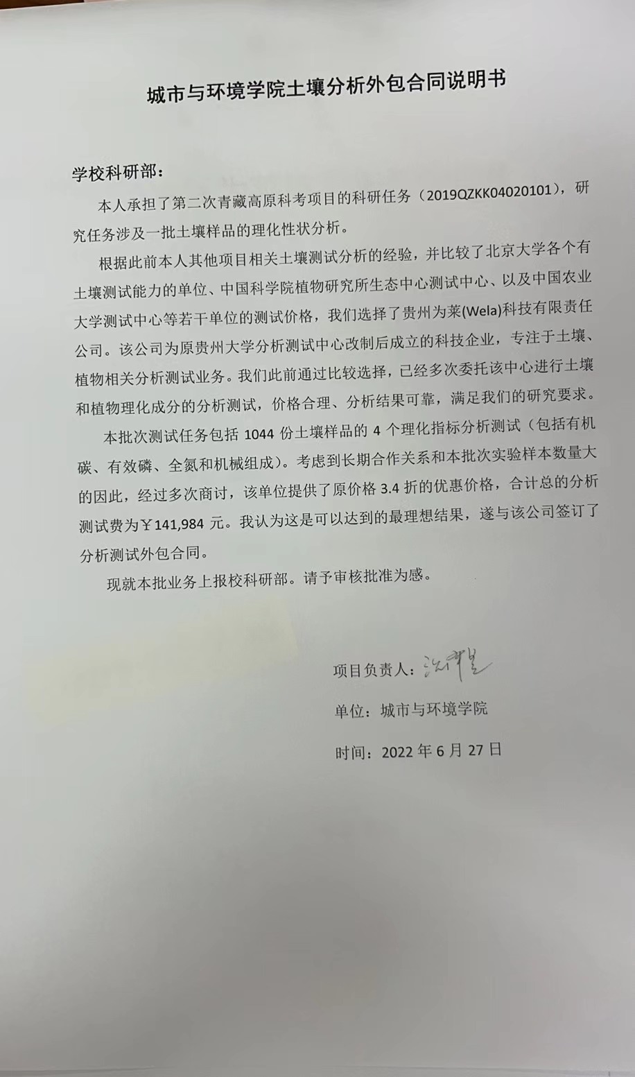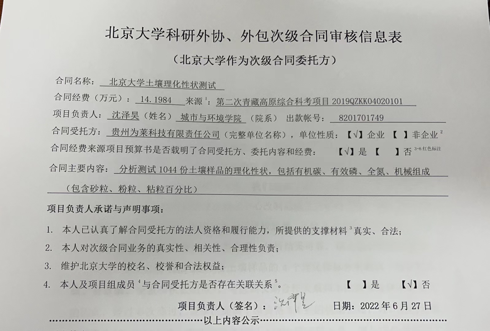 根据《关于北京大学理工科科研次级合同管理的通知》,现将北京大学理工科科研次级合同“北京大学土壤理化性状测试”相关内容予以公示。