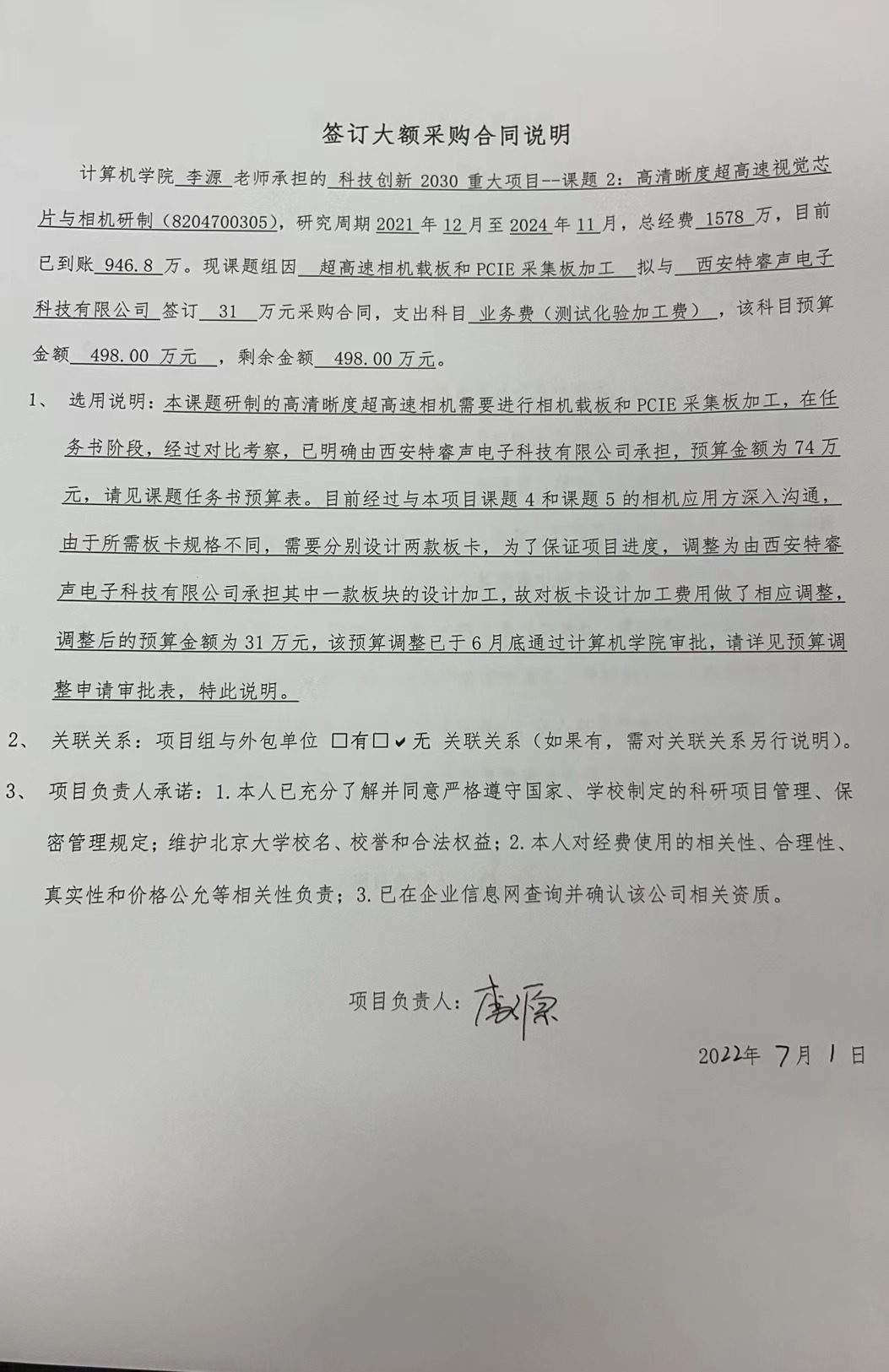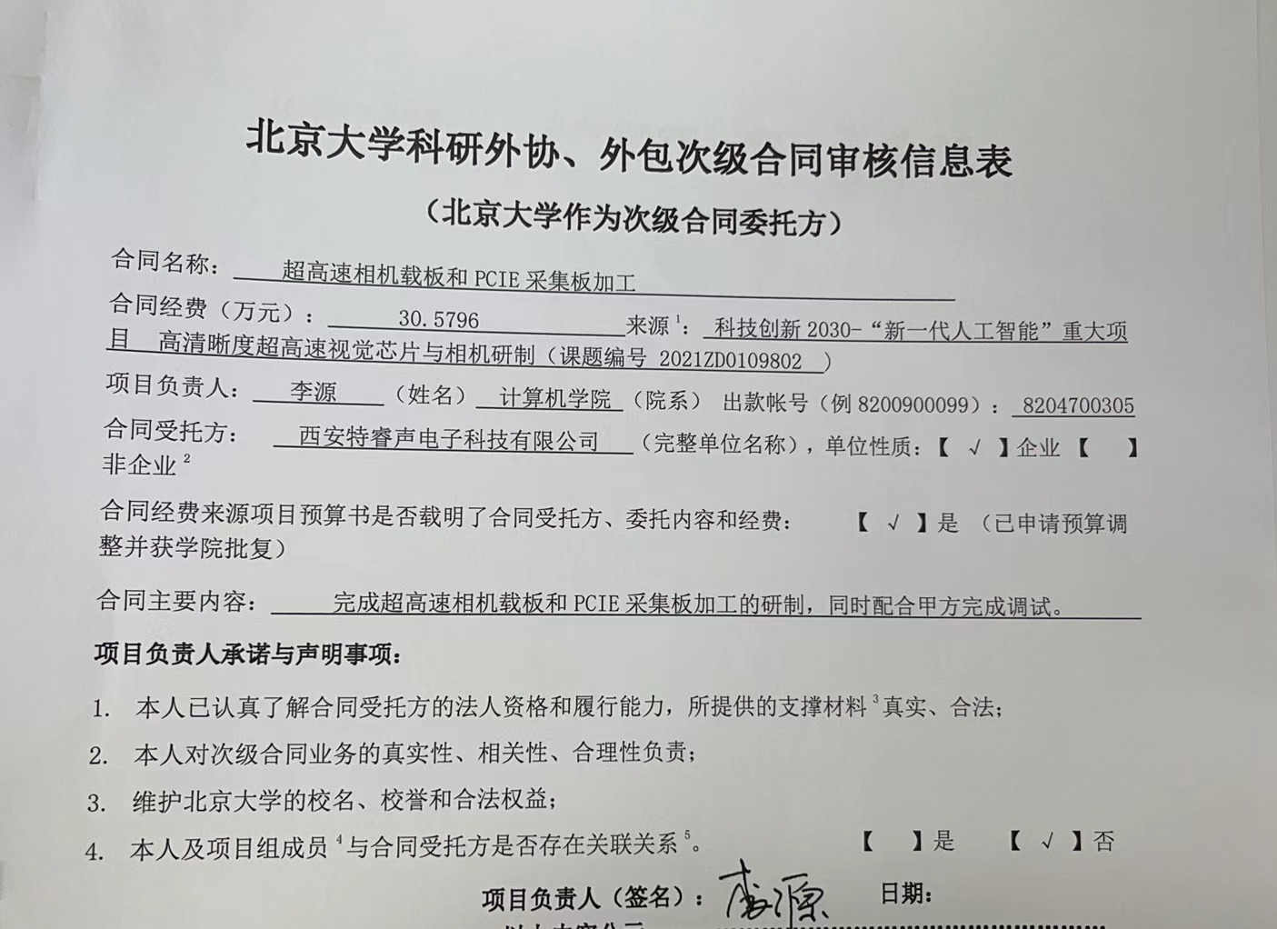 根据《关于北京大学理工科科研次级合同管理的通知》,现将北京大学理工科科研次级合同“超高速相机载板和PCIE采集板加工”相关内容予以公示。