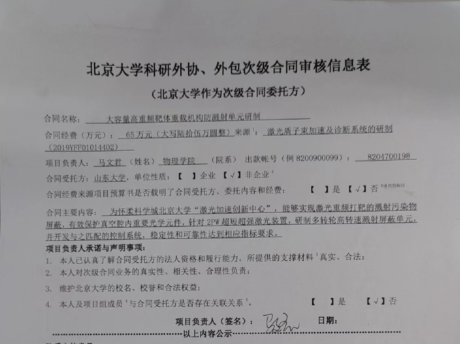 根据《关于北京大学理工科科研次级合同管理的通知》,现将北京大学理工科科研次级合同“大容量高重频靶体重载机构防溅射单元研制”相关内容予以公示。