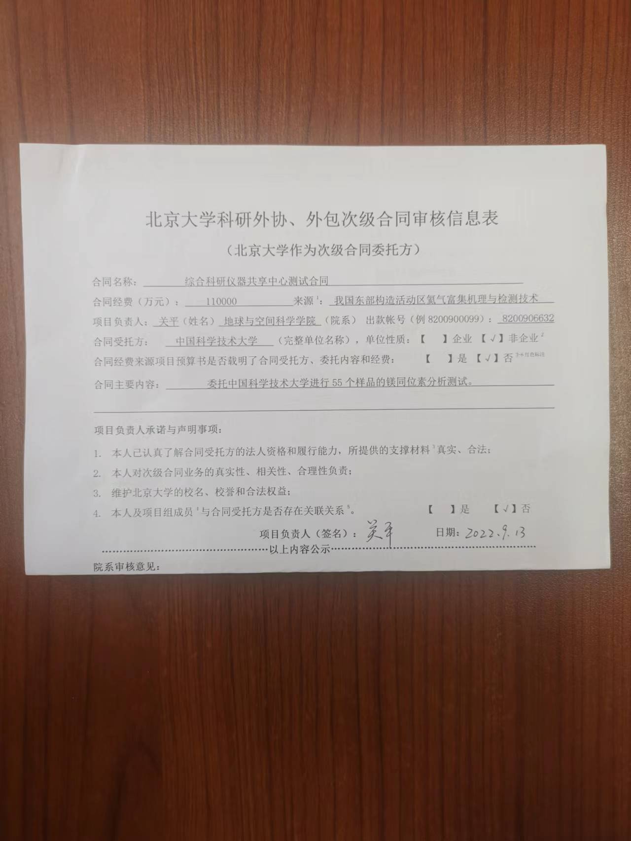 根据《关于北京大学理工科科研次级合同管理的通知》,现将北京大学理工科科研次级合同“综合科研仪器共享中心测试合同”相关内容予以公示。