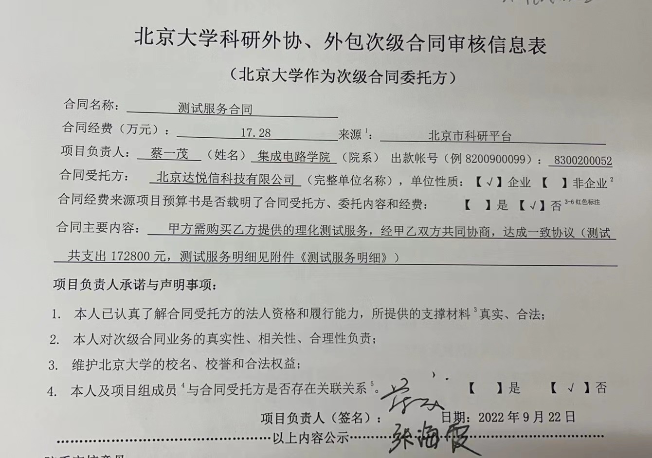 根据《关于北京大学理工科科研次级合同管理的通知》,现将北京大学理工科科研次级合同“测试服务合同”相关内容予以公示。