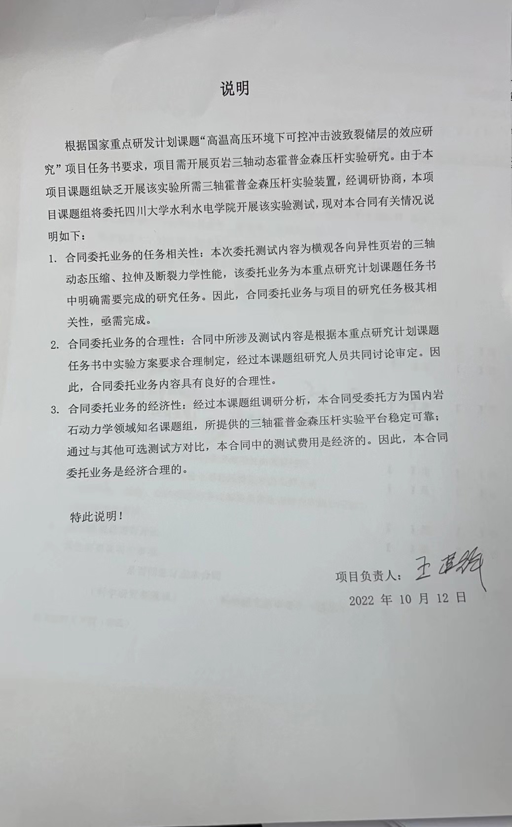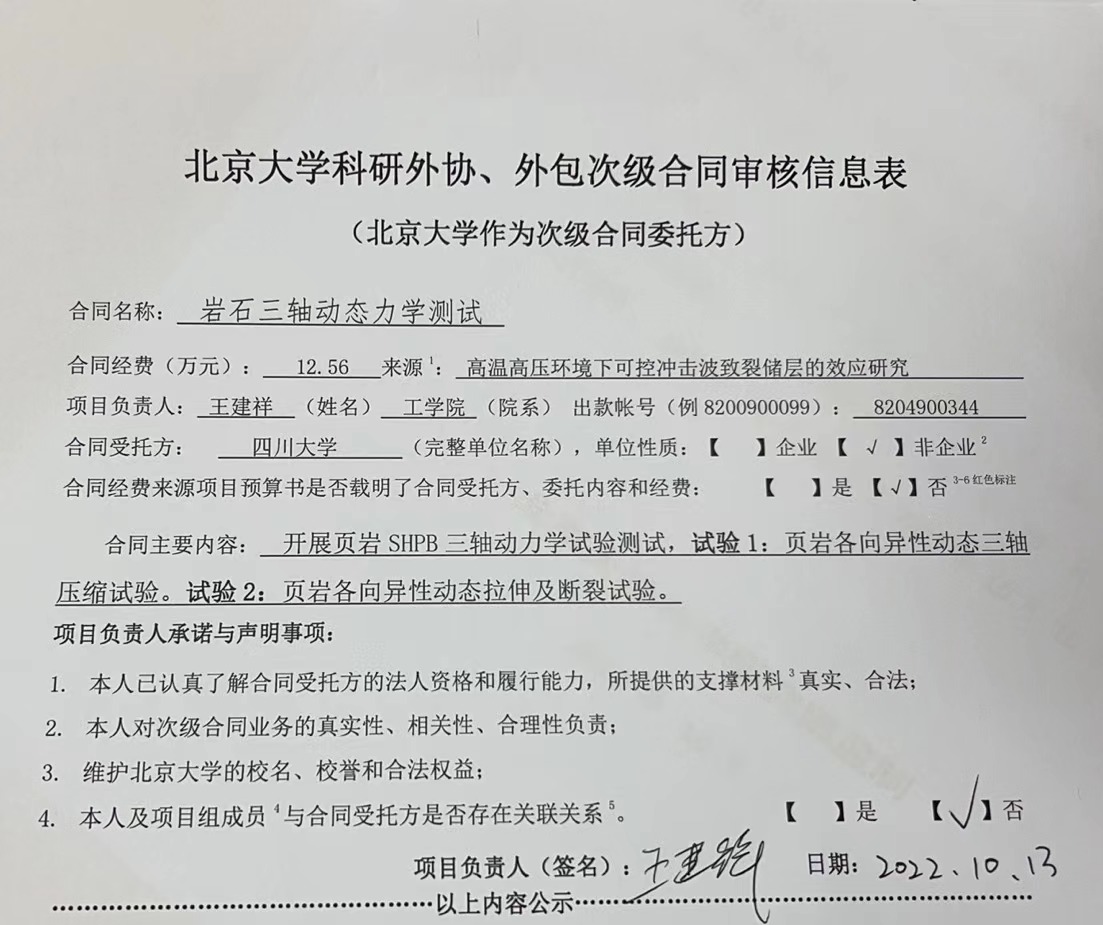根据《关于北京大学理工科科研次级合同管理的通知》,现将北京大学理工科科研次级合同“岩石三轴动态力学测试”相关内容予以公示。