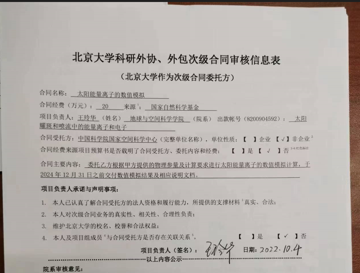 根据《关于北京大学理工科科研次级合同管理的通知》,现将北京大学理工科科研次级合同太阳能量离子的数值模拟”的开发相关内容予以公示。公示时间:2022年10月20日-2022年10月24日(3个工作日)。合同相关纸质材料可经预约后到勺园5乙330办公室进行查阅。