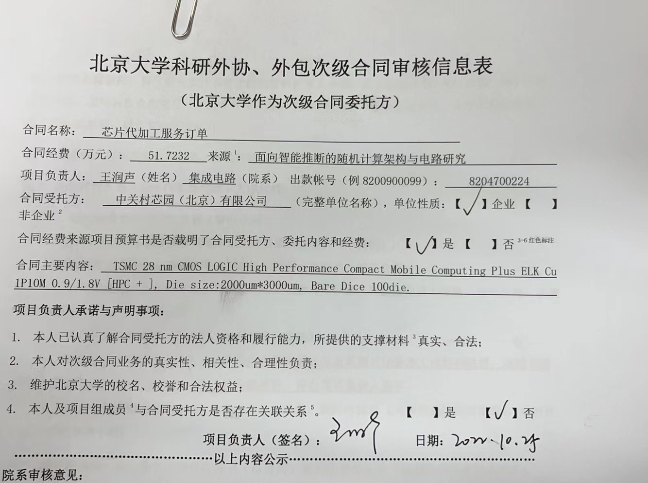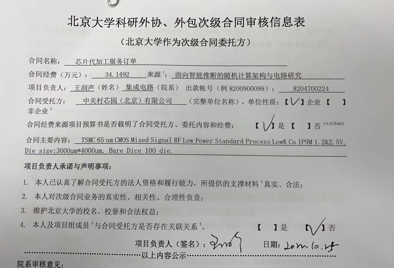 根据《关于北京大学理工科科研次级合同管理的通知》,现将北京大学理工科科研次级合同“芯片代加工服务订单”相关内容予以公示。