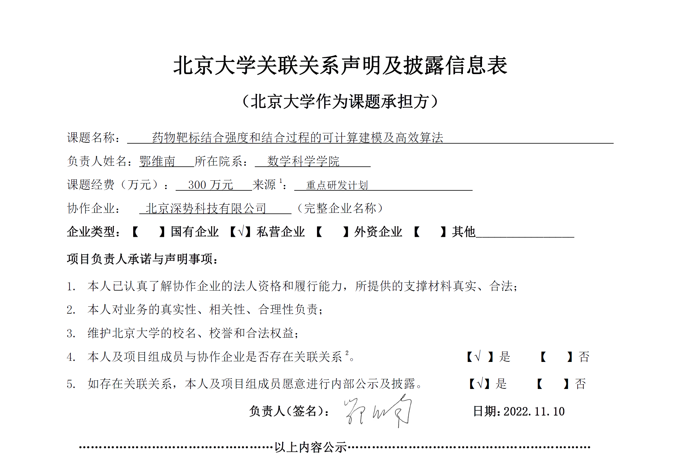 根据国家重点研发计划相关管理要求,现将北京大学关联关系声明及披露信息表予以公示。