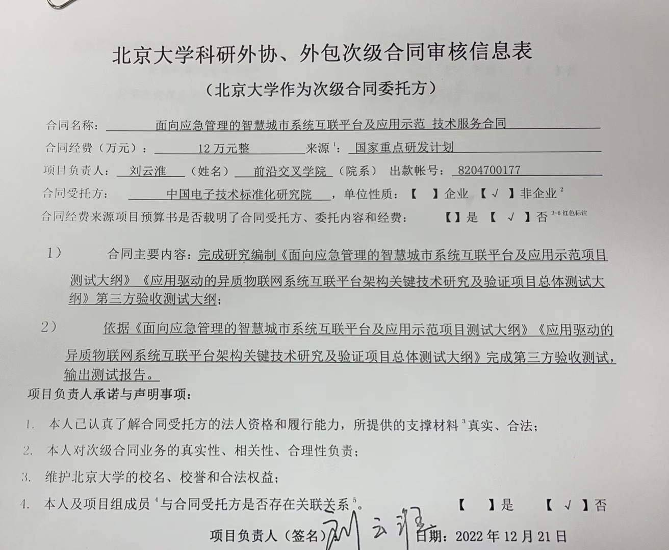 根据《关于北京大学理工科科研次级合同管理的通知》,现将北京大学理工科科研次级合同“面向应急管理的智慧城市系统互联平台及应用示范技术服务合同”相关内容予以公示。