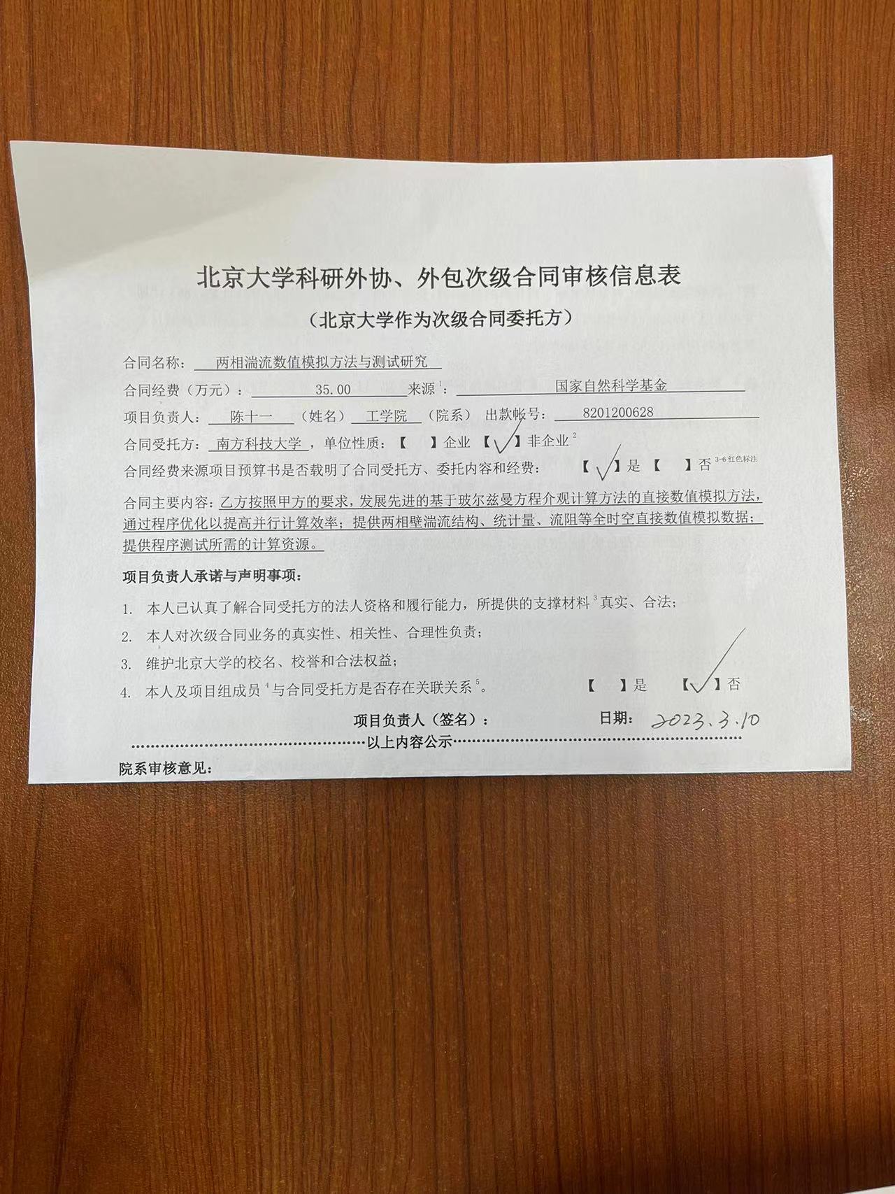 根据《关于北京大学理工科科研次级合同管理的通知》,现将北京大学理工科科研次级合同“两相湍流数值模拟方法与测试研究”相关内容予以公示。