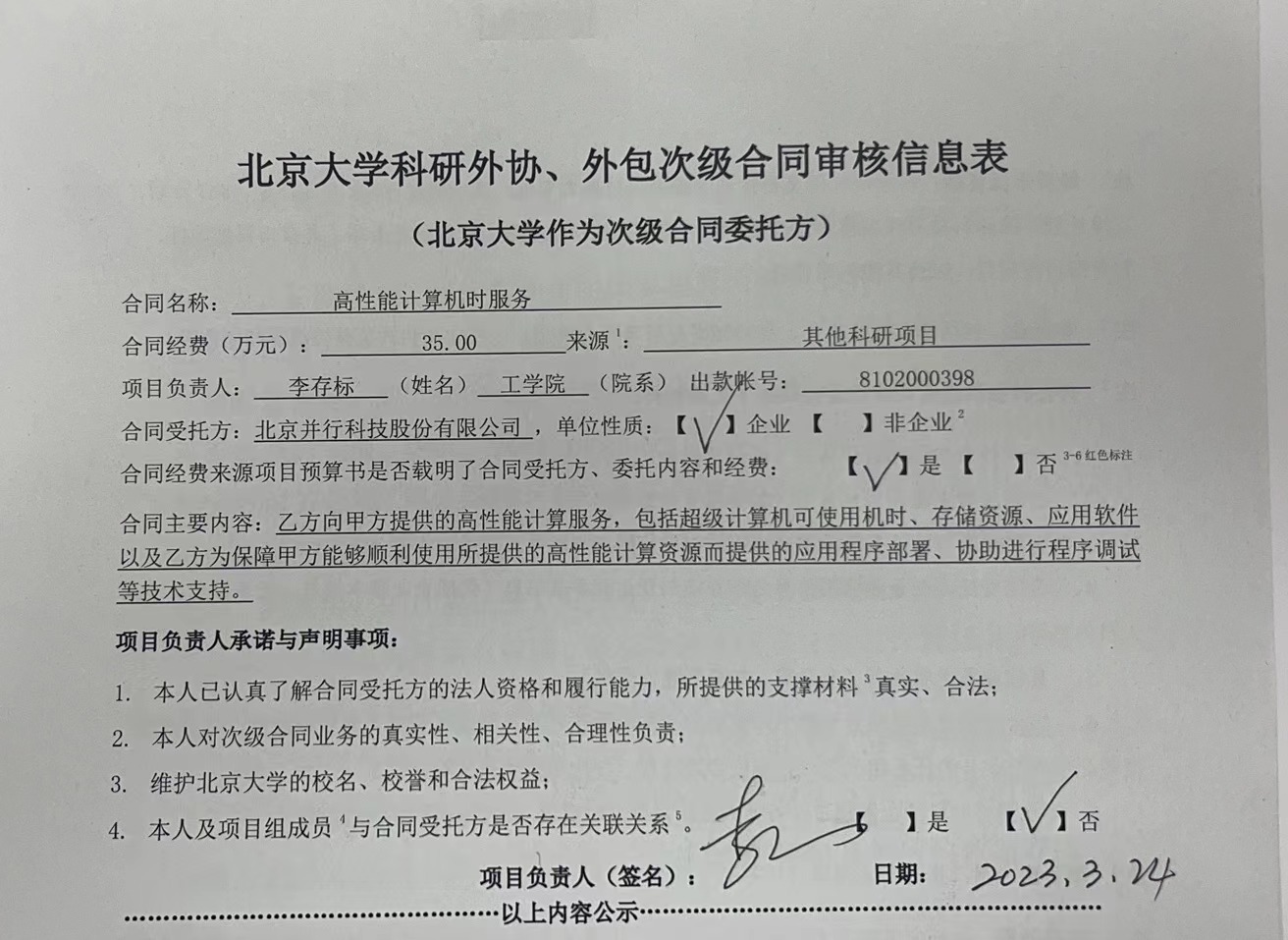 根据《关于北京大学理工科科研次级合同管理的通知》,现将北京大学理工科科研次级合同“高性能计算机时服务”相关内容予以公示。