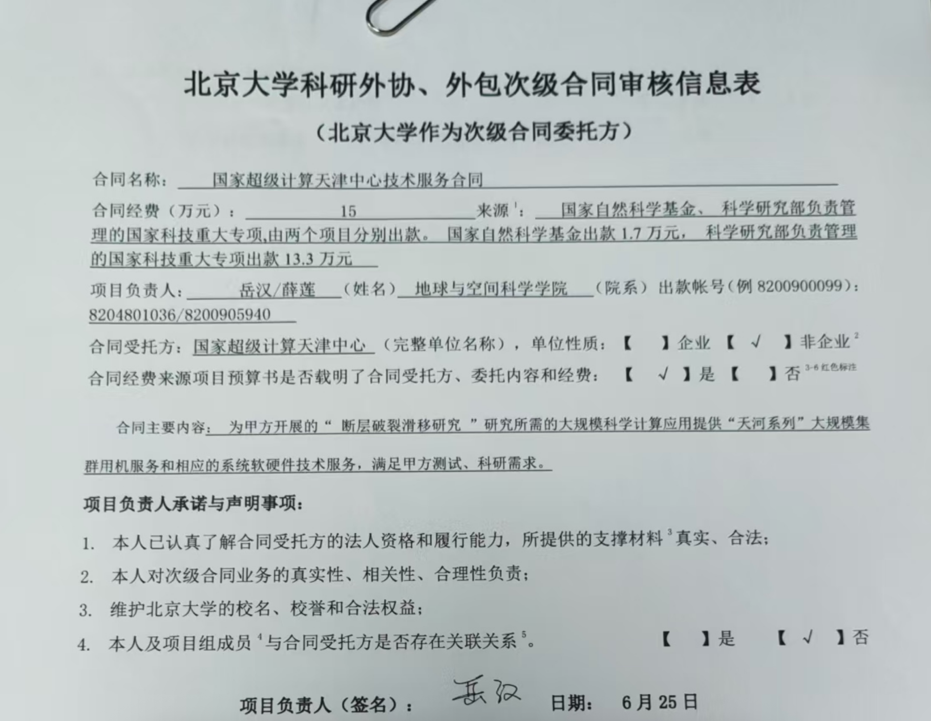 根据《关于北京大学理工科科研次级合同管理的通知》,现将北京大学理工科科研次级合同“国家超级计算天津中心技术服务合同”相关内容予以公示。