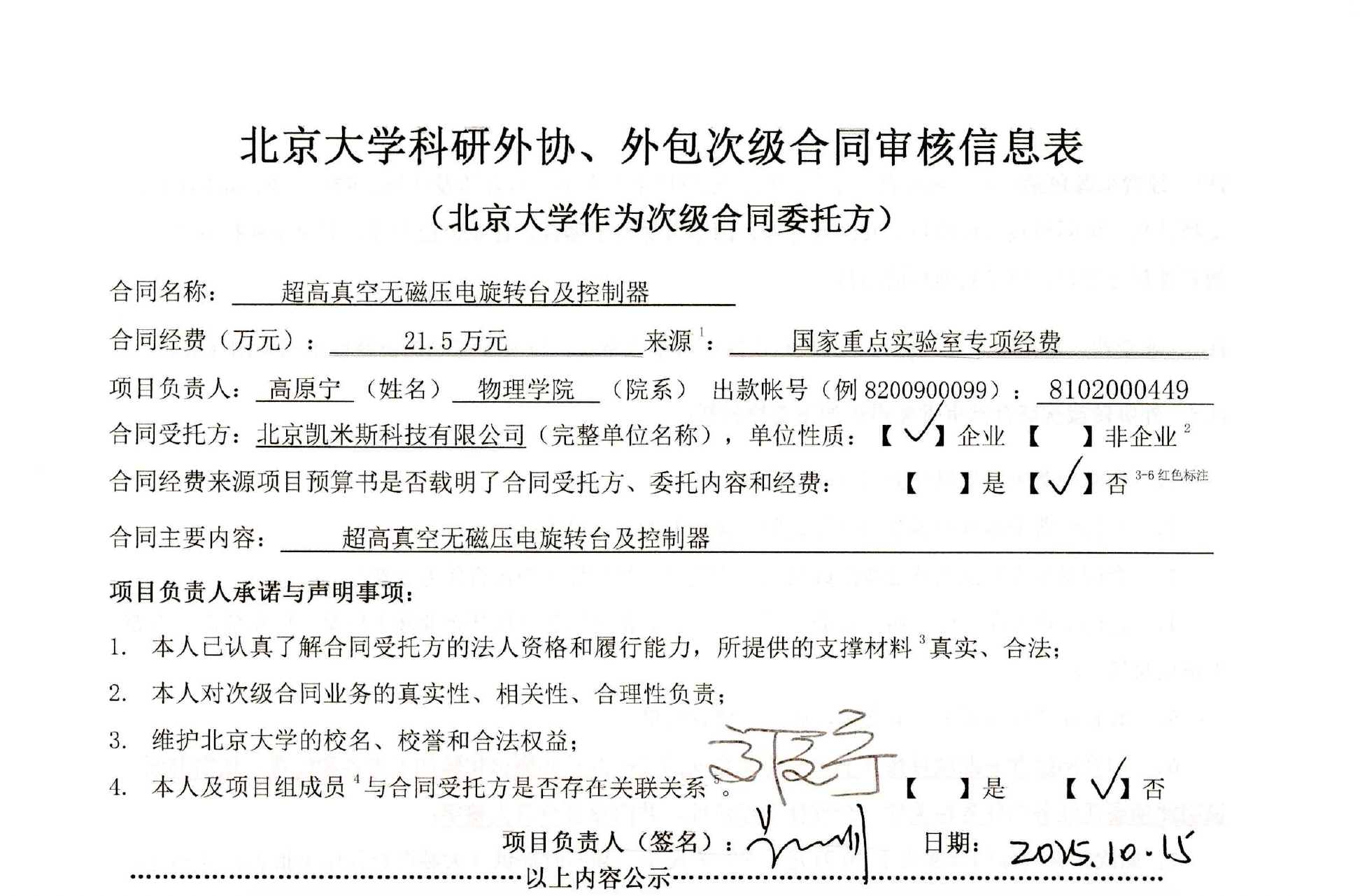 根据《关于北京大学理工科科研次级合同管理的通知》,现将北京大学理工科科研次级合同“超高真空无磁压电旋转台及控制器”相关内容予以公示。