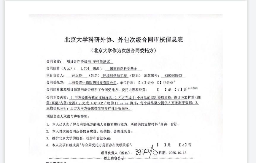 根据《关于北京大学理工科科研次级合同管理的通知》,现将北京大学理工科科研次级合同“项目合作协议书,多样性测试”相关内容予以公示。